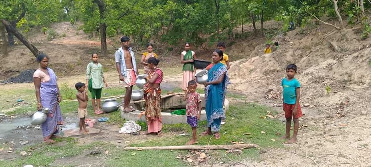 जंगल के डांढ़ी से पानी लाकर प्यास बुझाते हैं ग्रामीण