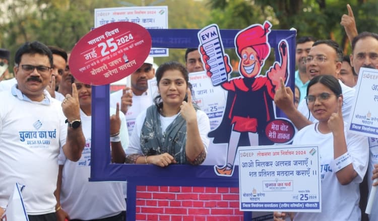 रविवार की सुबह जिला निर्वाचन पदाधिकारी सह बोकारो डीसी विजया जाधव, डीडीसी संदीप कुमार समेत जिला प्रशासन के अधिकारी-पदाधिकारी पैदल चलते नजर आयें. ये वॉक खुद की सेहत बनाने के लिए नहीं लगायी जा रही थी, बल्कि वॉक हो रहा था, ताकि मतदाता मतदान दिवस के दिन वोट करने व देश गढ़ने के लिए मतदान केंद्र जायें. शहरी क्षेत्र में मतदान प्रतिशत बढ़ाने को लेकर डीइओ सह डीसी विजया जाधव के नेतृत्व में सेक्टर 05 स्थित पत्थरकट्टा चौक से श्री राम मंदिर चौक तक वोट वाकाथान का आयोजन किया गया.चुनाव का पर्व, देश का गर्व :