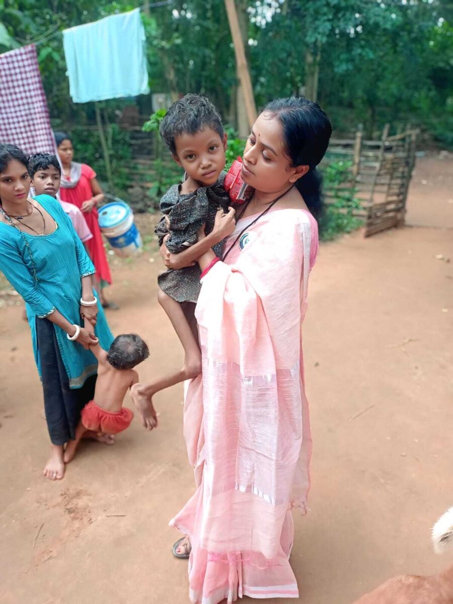 जगन्नाथपुर प्रखंड के गुटुसाही में डायरिया फैलने की सूचना पर पहुंचीं पीएलवी प्रमिला पात्रो, समाज सेवी आमिर हिंदुस्तानी और शंभू पोद्दार को बेसहारा कुपोषित बच्ची की जानकारी मिली.