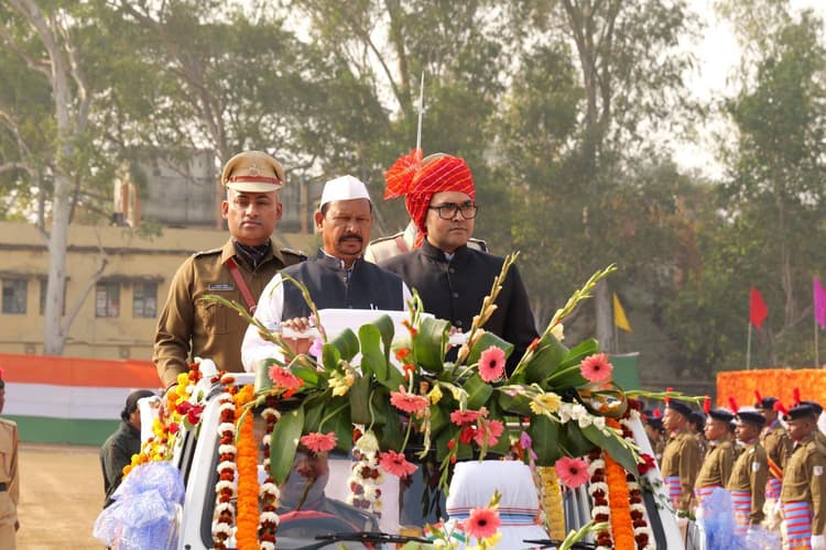 चाईबासा. पश्चिमी सिंहभूम जिला में गणतंत्र दिवस का मुख्य समारोह चाईबासा पुलिस लाइन में हुआ. झारखंड के भू-राजस्व एवं परिवहन मंत्री दीपक बिरुवा ने झंडा फहराया. इसके पूर्व मंत्री ने शहीद स्थल पर शहीदों को श्रद्धांजलि दी. उन्होंने खुली जिप्सी से परेड का निरीक्षण किया. मंत्री ने कहा कि भारत वैश्विक पटल पर एक सफल लोकतंत्र के रूप में उभरा है. मंत्री ने कहा कि अबुआ आवास योजना से जिले में वित्तीय वर्ष 2023-24 में 10 हजार 44 आवास स्वीकृत हुए. 2024-25 में 21 हजार 30 लाभुकों को आवास देने का लक्ष्य है. 17 हजार आवास को स्वीकृति दी गयी है. प्रधानमंत्री आवास योजना (ग्रामीण) से 2024-25 में पांच हजार 624 लाभुकों को आवास देने का लक्ष्य है. तीन हजार 400 आवास को स्वीकृति दी गयी है. मनरेगा योजना से वर्ष 2024-25 में प्राप्त लक्ष्य 29 लाख 99 हजार 352 के विरुद्ध 28 लाख 49 हजार 236 मानव दिवस सृजन किया गया है. मौके पर जिला स्वास्थ्य विभाग की झांकी को प्रथम, जिला जनसंपर्क विभाग को द्वितीय और जिला पशुपालन एवं मत्स्य विभाग को तृतीय पुरस्कार मिला.