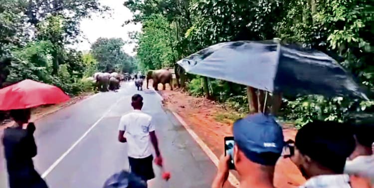 चंपुआ वन क्षेत्र के विभिन्न गांवों में लगभग 70 हाथियों का झुंड लगातार उत्पात मचा रहा है. हाथी कभी चंपुआ शहर में घुस आते हैं तो कभी ग्रामीण इलाकों में फसलों और घरों को नुकसान पहुंचा रहे हैं. वन विभाग के अनुसार, चंपुआ रेंज के तहत पांच सेक्शन आते हैं, जिनमें करीब 40 ‘हाथी मित्र’ तैनात किए गए हैं. इनका कार्य हाथियों की निगरानी, ग्रामीणों को सतर्क करना और हाथियों को जंगल की ओर खदेड़ना है. लेकिन वर्तमान में हाथी मित्र अपनी मांगों को लेकर राजधानी भुवनेश्वर में धरने पर बैठे हैं, जिससे फील्ड में उनकी अनुपस्थिति से हालात बिगड़ते जा रहे हैं.पिछले 24 घंटे में छह घर और फसलें क्षतिग्रस्त