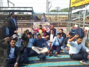 चक्रधरपुर. चक्रधरपुर रेल मंडल में ऑल इंडिया लोको रनिंग स्टाफ एसोसिएशन (अलारसा) के बैनर तले लोको रनिंग स्टाफ की भूख हड़ताल दूसरे दिन बुधवार को भी जारी रही. मंगलवार की रात कड़ाके की ठंड में लोको रनिंग स्टाफ हड़ताल पर जमे रहे. इस दौरान लोको पायलट सेंटर राजीव कुमार की तबीयत बिगड़ गयी. इसके बावजूद वह धरना स्थल पर हैं. चक्रधरपुर क्रू लॉबी परिसर में धरना जारी है. अलारसा के सहायक मंडल सचिव एनके नीलमणि ने कहा कि रेलवे की सभी क्रू लॉबियों में लोको रनिंग स्टाफ भूख हड़ताल पर हैं. गुरुवार की सुबह 10 बजे तक भूख हड़ताल शांतिपूर्ण तरीके से जारी रहेगी.