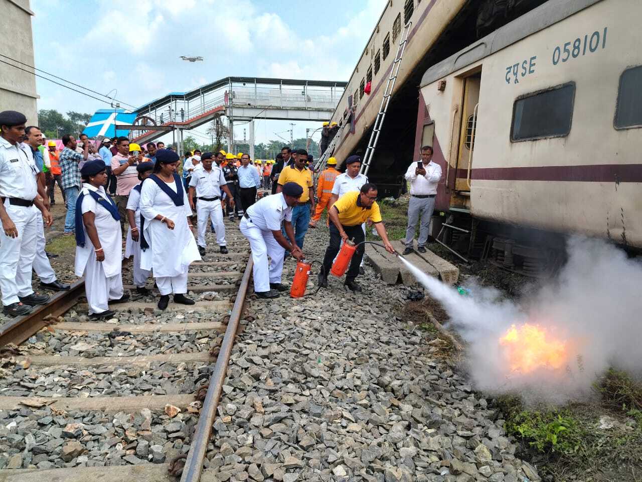घटनास्थल पर एक्सीडेंट रीलिफ ट्रेन, क्रेन, पुलिस व चिकित्सा विभाग ने मोर्चा संभाल लिया. रेलवे की एआरटी, एनडीआरएफ, सिविल डिफेंस ने एसी कोच की खिड़की गैस कटर से काटकर यात्रियों का रेस्क्यू किया. करीब एक घंटे की कड़ी मशक्कत के बाद एसी कोच से 64 व स्लीपर से 68 यात्रियों (पुतला) को सुरक्षित कोच से रेस्क्यू किया. सिविल डिफेंस के जवानों ने कंबल से स्ट्रेचर तैयार कर बचाव कार्य किया. कोच में लगी आग को फायर संयंत्र का प्रयोग कर बुझाया गया. घायल यात्रियों को चिकित्सा शिविर लगाकर प्राथमिक उपचार किया गया, जबकि गंभीर यात्रियों को एंबुलेंस से रेलवे अस्पताल में भर्ती कराया गया. मॉक ड्रिल के दौरान राहत बचाव के तकनीक को समझा गया. जहां गलती हुई उसे सुधारा गया.– ट्रेन दुर्घटना होती है, तो तैयार रहने व तत्परता से जान-माल की क्षति को कम कर सकते हैं. कोच में फंसे यात्रियों को रेस्क्यू कर सुरक्षित निकालेंगे. जख्मी लोगों की जान बचायेंगे. उन्होंने बचाव व राहत कार्य में शामिल सभी रेलकर्मियों व अधिकारियों का हौसला बढ़ाया. उन्होंने बहुत कम समय में राहत कार्य को अंजाम देने की प्रशंसा की.