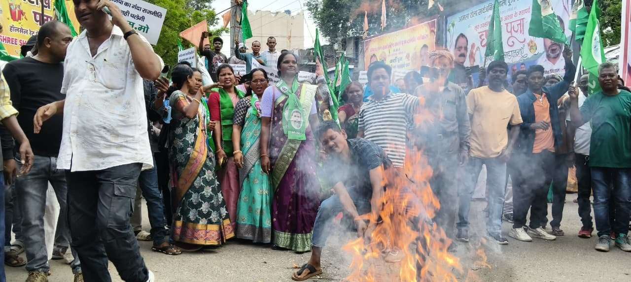 झामुमो जिला कमेटी ने पूर्व सीएम चंपाई सोरेन व नेता प्रतिपक्ष बाबूलाल मरांडी का पुतला दहन किया गया. मौके पर ईचागढ़ विधायक सविता महतो, केंद्रीय सदस्य गणेश चौधरी, जिला उपाध्यक्ष भोला मोहंती, नगर अध्यक्ष शंभु आचार्य, मांगीलाल महतो, घासीराम सोरेन, लीटू पटनायक, अमृत महतो, विशु हेंब्रम, सुधीर महतो, डब्बा सोरेन जिला सचिव बैद्यनाथ टुडू, दिलीप किस्कू, गुरुचरण मुखी, सौरव साहू, अविनाश कबी, महिला मोर्चा जिला अध्यक्ष सुशीला तांती, सरायकेला प्रखंड़ अध्यक्ष सुरेश हेम्ब्रम, तपन कामिला, सामु किस्कू, निरेन माझी, सुबल महतो, श्रीधर सिंहदेव, कृष्णा राणा, सूरज सिंह, पिंटू लोहार, संजय प्रधान, गोरा वर्मन समेत अन्य उपस्थित थे.