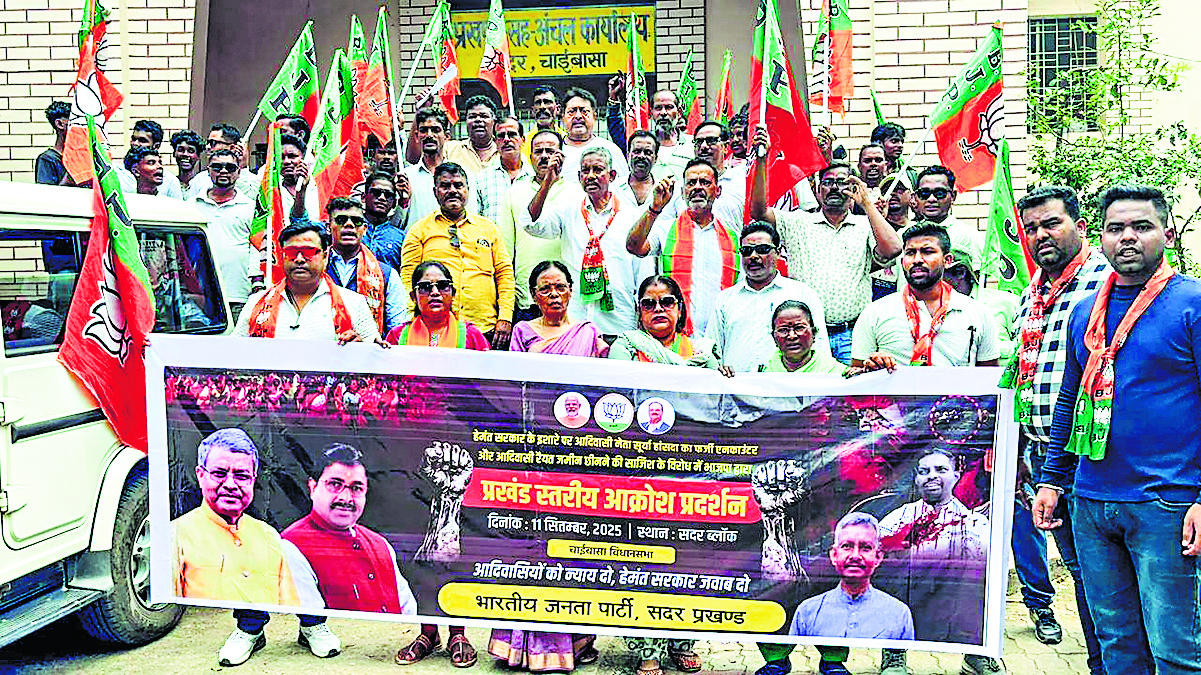 भाजपा कार्यकर्ताओं ने राजनीतिक कार्यकर्ता सूर्या हांसदा एनकाउंटर की जांच सीबीआइ से कराने व नगड़ी के रैयतों की जमीन वापस दिलाने की मांग पर गुरुवार को जिले के विभिन्न प्रखंड मुख्यालयों में धरना-प्रदर्शन किया. वहीं, सदर प्रखंड मुख्यालय में जिला अध्यक्ष संजय पांडे के नेतृत्व में धरना दिया. धरनास्थल से भाजपा नेताओं ने राज्य सरकार पर करारा प्रहार करते हुए कहा कि झारखंड सरकार भ्रष्ट और संवेदनहीन हो चुकी है. आदिवासियों की हो रही हत्याएं, किसानों की जमीन लूट और महिलाओं पर बढ़ते अपराध ने जनता को भय और असुरक्षा के माहौल में धकेल दिया है. सूर्या हांसदा की हत्या और नगड़ी की जमीन हड़पने का प्रयास इसका ताजा उदाहरण है. इस मौके पर राज्यपाल के नाम बीडीओ को ज्ञापन सौंपा. कार्यक्रम में भाजपा के प्रदेश प्रवक्ता जेबी तुबिड, नगर अध्यक्ष पवन शर्मा, वरिष्ठ नेता हेमंत केसरी, जय किशन बिरुली, नीला नाग, रूपा दास, सुखमति बिरुवा, रानी बांदिया, नितिन विश्वकर्मा, रवि शंकर विश्वकर्मा, जुली खत्री, पंकज खिरवाल, मुकेश कुमार, मुकेश योगी, कामेश्वर विश्वकर्मा, राकेश पोद्दार, कुंज बिहारी खंडाइत, निरेश देवगम, संजय पासवान, लखविंदर महाराणा, मेवालाल देवगन, संजीव सुंडी, शुभम ठाकुर, हर्ष रवानी, द्वारिका शर्मा, अंगद साव, सुमित झा, नंदन शर्मा, चंदन मछुआ, रोहित दास, घनश्याम देवगन, उल्लास नाग, सत्यव्रत जोशी, छोटू मछुआ, विजय तियू, विजय देवगन, सावन तियू व कार्यकर्ता शामिल हुए.डिस्क्लेमर: यह प्रभात खबर समाचार पत्र की ऑटोमेटेड न्यूज फीड है. इसे प्रभात खबर डॉट कॉम की टीम ने संपादित नहीं किया है