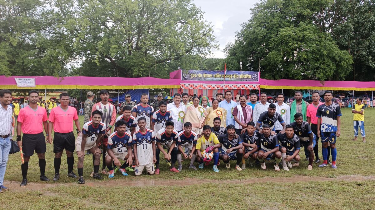 मझगांव. मझगांव प्रखंड के खैरपाल में युवक संघ के तत्वावधान में तीन दिवसीय वार्षिक पदकंदुक क्रीड़ा प्रतियोगिता का समापन रविवार को हुआ. समापन समारोह में मुख्य अतिथि सिंहभूम की सांसद जोबा माझी व विशिष्ट अतिथि विधायक निरल पुरती शामिल हुए. फुटबॉल के फाइनल मुकाबले में बेनाम बादशाह चाईबासा और टिक टॉक इलेवन चक्रधरपुर के बीच रोमांचक भिड़ंत हुई. मैच में टिक टॉक इलेवन ने 1-0 से विजय हासिल करते हुए चैंपियनशिप अपने नाम की. विजेता टीम को समिति की ओर से 1.25 लाख रुपये और उपविजेता टीम को 70 हजार रुपये बतौर