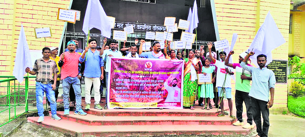 तांतनगर प्रखंड के कोकचो पंचायत की जर्जर कच्ची सड़कों को डीएमएफटी मद से पीसीसी पथ बनाने तथा युवाओं में बढ़ती नशाखोरी से हो रही बर्बादी की रोकथाम के लिए ‘झारखंड बचाओ जनसंघर्ष मोर्चा’ के केंद्रीय अध्यक्ष माधव चंद्र कुंकल के नेतृत्व में ग्रामीणों ने बुधवार को प्रखंड कार्यालय परिसर में धरना प्रदर्शन किया. धरना-प्रदर्शन से पहले कुकंल के नेतृत्व में कोकचो से तांतनगर प्रखंड कार्यालय तक पदयात्रा की गयी. धरना- प्रदर्शन के बाद उपायुक्त के नाम बीडीओ को ज्ञापन सौंपा गया.ग्रामीणों की मांग