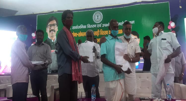 Jharkhand News (सरायकेला/चाईबासा) : झारखंड सरकार की महत्वाकांक्षी सोना-सोबरन धोती-साड़ी- लुंगी योजना के तहत 10 रुपये में गरीब लाभुकों को साड़ी-धोती व लुंगी मिलेगा. राज्य स्तर पर सीएम हेमंत सोरेन द्वारा शुभारंभ करने के बाद सरायकेला-खरसावां जिला के टाउन हॉल में आयोजित कार्यक्रम में सरकार के आदिवासी कल्याण सह परिवहन मंत्री चंपई सोरेन ने गरीबों के बीच साड़ी, धोती व लूंगी देकर योजना की शुरुआत किया.