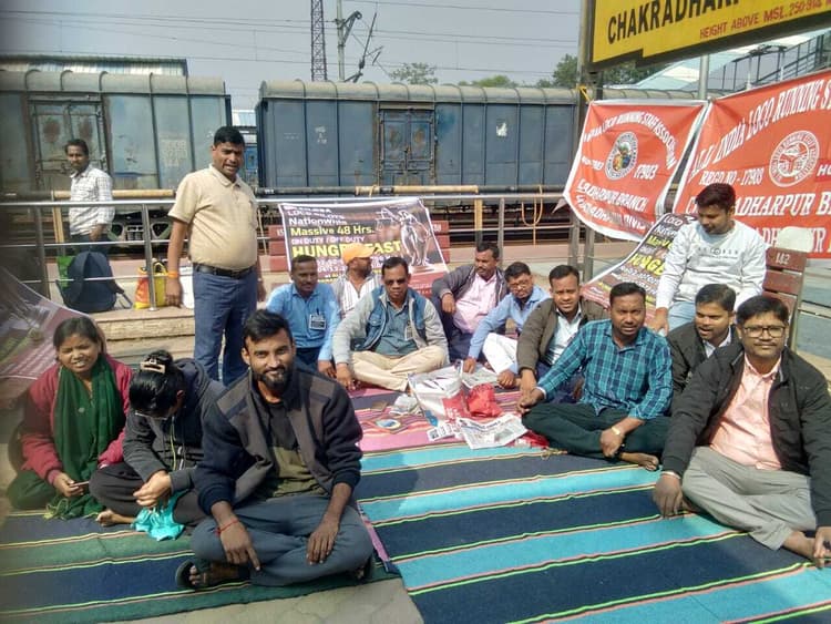 25 प्रतिशत किलोमीटर भत्ता में बढ़ोत्तरी, वैगन का हैंडब्रेक बंधवाने व लंबे समय तक ड्यूटी कराने समेत नौ मुद्दों को लेकर चक्रधरपुर रेल मंडल में लोको रनिंग स्टाफ की 48 घंटे की भूख हड़ताल शुरू हो गयी. मंगलवार सुबह 10 बजे से रेल मंडल के करीब 2500 लोको रनिंग स्टाफ 48 घंटे की भूख हड़ताल पर हैं. भूखे रहकर ट्रेनों को चला रहे हैं. अलारसा के आरके राणा के नेतृत्व में चक्रधरपुर क्रू लॉबी में करीब 500 लोको रनिंग स्टाफ भूख हड़ताल पर बैठे.उन्होंने पहले दिन रेलवे व सरकार के खिलाफ आवाज बुलंद की. रेलवे के अधिकारियों को अपनी मांगों से अवगत कराया. अलारसा के मंडल कोषाध्यक्ष सीएम महतो ने कहा कि केंद्रीय कमेटी के आह्वान पर चक्रधरपुर समेत 9 क्रू लॉबियों में रनिंग स्टाफ भूख हड़ताल पर हैं और ट्रेनों का संचालन सुचारु रूप से कर रहे हैं. उन्होंने कहा कि रनिंग स्टाफ की सभी मांगें जायज हैं. इसपर रेलवे व सरकार गंभीरता से विचार करे. मांगों पर सुनवाई नहीं हुई, तो आंदोलन को और तेज किया जायेगा. इस अवसर पर अलारसा चक्रधरपुर के बीबी महतो, संयुक्त सचिव पंकज कुमार, आरके राणा, राजीव कुमार, बीके पोद्दार, आलोक कुमार, दीपक मीणा समेत काफी संख्या में रनिंग स्टाफ उपस्थित थे.