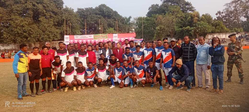 झींकपानी. एसीसी क्लब मैदान में रविवार को आदिवासी क्लब की ओर से तीन दिवसीय “एक मुंडा स्तरीय ” फुटबॉल प्रतियोगिता का समापन हुआ. समापन समारोह में मुख्य अतिथि मंत्री दीपक बिरुवा, विशिष्ट अतिथि एसीसी झींकपानी के प्लांट मैनेजर राज गुरुंग, सम्मानित अतिथि अडानी फाउंडेशन के सीएसआर पदाधिकारी उत्तम कुमार सोनी और जगन्नाथपुर एसडीपीओ राफायल मुर्मू मौजूद थे. फाइनल मुकाबले में कुर्सी एफसी चाईबासा ने हेम्ब्रम स्पीच पतरापोषी को 3-0 से हराकर ट्रॉफी पर कब्जा जमाया. बीआरसी टोंटो तीसरे और रोलाडीह एफसी चौथे स्थान पर रहे. फोर्टी प्लस वर्ग में सेवासदन गम्हरिया की टीम ने जगन्नाथपुर एफसी को पेनाल्टी शूटआउट में हराकर जीत दर्ज की. इस वर्ग में जमशेदपुर पुलिस एफसी तीसरे व चक्रधरपुर एफसी चौथे स्थान पर रही. समापन समारोह में विजेता और उपविजेता टीमों को अतिथियों द्वारा पुरस्कृत किया गया. तीन दिवसीय प्रतियोगिता में कुल 66 टीमों ने हिस्सा लिया. आयोजन को सफल बनाने में तुराम बिरुली, बीरबल गोप, दिलीप सोय, सिद्धार्थ हेस्सा, बीरेन गोप, जीतेन बारी सहित आदिवासी क्लब के सदस्यों का सराहनीय योगदान रहा.