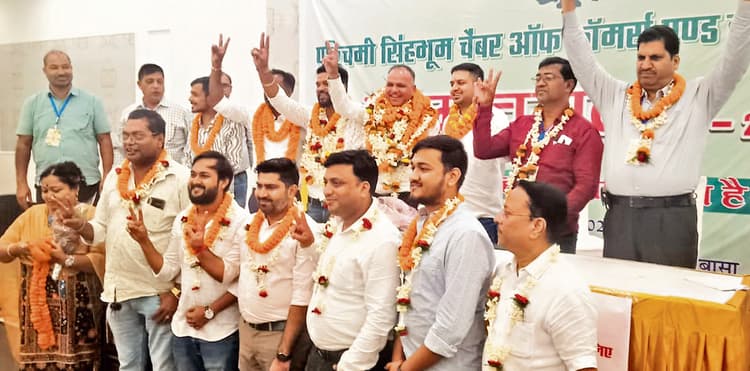 पश्चिमी सिंहभूम चेंबर ऑफ कॉमर्स एड इंडस्ट्रीज का 2025-27 का चुनाव रविवार को शांतिपूर्ण तरीक से खिरवाल धर्मशाला के हॉल में संपन्न हुआ. चुनाव में 338 में से 308 वोटरों ने वोट किया. अध्यक्ष पद के दावेदार निरंजन अग्रवाल ने 172 मत प्राप्त कर अपने निकटतम प्रतिद्धंदी कमल कुमार लाठ को पराजित किया. कमल कुमार लाठ को 135 मत मिले. उपाध्यक्ष के दो पदों पर गौरव मूंधड़ा और छोटेलाल तामसोय जीते. गौरव मुंधड़ा को 221 मत व छोटेलाल तामसोय को 175 मत मिले. जबकि इस पद के उम्मीदवार मुदस्सर इमाम खान उर्फ जैकी को 142 मत प्राप्त हुए. इस पद पर तीन उम्मीदवार खड़ थे. महासचिव पद की लड़ाई में आयुष दोदराजका 170 मत लाकर अपने निकटतम प्रतिद्धंदी पवन अग्रवाल को पराजित किया. पवन अग्रवाल को 102 मत मिले. संयुक्त सचिव के दो पदों पर तीन उम्मीदवार खड़े थे, जिसमें मोहित सुल्तानियां और प्रमोद कुमार खिरवाल जीते. मोहित सुल्तानियां को 200 वोट और प्रमोद कुमार खिरवाल को 185 वोट मिले. जगविंदर को 145 मत मिले.निर्विरोध चुने गये पदाधिकारी