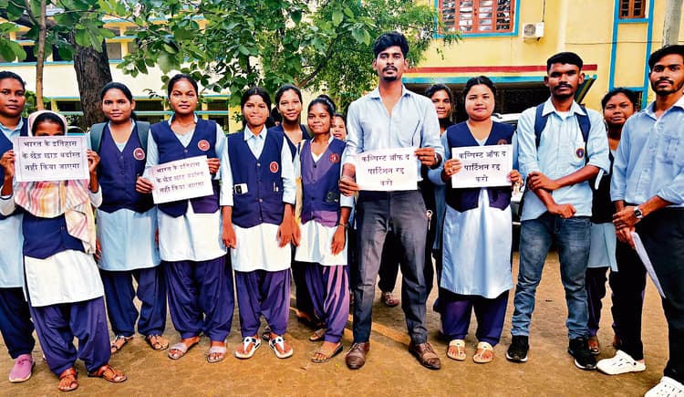 कोल्हान विश्वविद्यालय के मुख्य द्वार के समक्ष बुधवार को एनएसयूआइ के विश्वविद्यालय अध्यक्ष वीर सिंह बालमुचु की अगुवाई में प्रदर्शन किया गया. एनसीइआरटी के नये पार्टिशन मॉड्यूल ” कल्पिस्ट ऑफ द पार्टिशन ” की प्रतियां फाड़कर छात्रों ने बीजेपी सरकार की झूठ व पक्षपाती शिक्षा नीति का विरोध किया. इसमें भारत के इतिहास को लेकर दिग्भ्रमित करने वाले तथ्य मौजूद हैं. ये विभाजन की मानसिकता रखते हैं. कार्यक्रम में सक्रिय रूप से रीना होनहागा, अमित होनहागा, संतोष गोप, बेलमती हेम्ब्रम, घनश्याम सोय, मीर मार्शल बिरुआ व अधिक संख्या में छात्र-छात्राएं उपस्थित थे. छात्रों ने कहा कि शिक्षा से छेड़छाड़ बर्दाश्त नहीं होगा. इतिहास के साथ अन्याय बर्दाश्त नहीं होगा. दूसरे देश अपने बच्चों को एआइ व कोडिंग जैसे शिक्षा देकर आगे बढ़ाने की कोशिश कर रहे हैं.डिस्क्लेमर: यह प्रभात खबर समाचार पत्र की ऑटोमेटेड न्यूज फीड है. इसे प्रभात खबर डॉट कॉम की टीम ने संपादित नहीं किया है