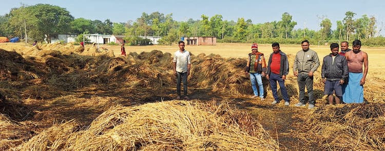 बंदगांव प्रखंड की लांडुपोदा पंचायत स्थित खैरुडीह गांव में बुधवार की सुबह 5 बजे आग से दो किसानों के धान की फसल जल गयी. किसानों को करीब तीन लाख का नुकसान हुआ है. जानकारी के मुताबिक, गांव के चतुर्भुज महतो और गांधी महतो ने अपने खेत से धान काटकर करीब 30 बैलगाड़ी से लाकर खलिहान में रखा था. बुधवार की सुबह अचानक खलिहान में रखी फसल में आग लग गयी. सूचना मिलते ही विधायक प्रतिनिधि मिथुन गागराई, समाजसेवी जातेन महतो, बीस सूत्री सदस्य शिव शंकर महतो, झामुमो किसान मोर्चा जिला अध्यक्ष, अनिल महतो, ललितो महतो सहित कई लोग पहुंचे. आग लगने के कारणों का पता नहीं चला है. असामाजिक तत्वों द्वारा आग लगाने की बात कही जा रही है. विधायक प्रतिनिधि मिथुन गागराई ने बंदगांव सीओ भीष्म कुमार को जानकारी दी. किसान को मुआवजा देने की मांग की है. कृषि पदाधिकारी लाल सिंह भूमिज ने मुआवजा का आश्वासन दिया.डिस्क्लेमर: यह प्रभात खबर समाचार पत्र की ऑटोमेटेड न्यूज फीड है. इसे प्रभात खबर डॉट कॉम की टीम ने संपादित नहीं किया है