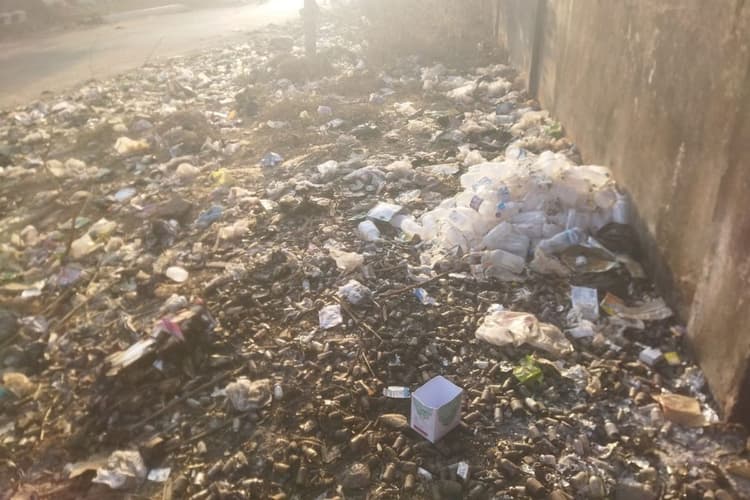 Chaibasa: नोवामुंडी में पथ निर्माण विभाग के मुख्य गेट और मेन रोड के समीप गंदगी का अंबार लगा हुआ है, जिससे क्षेत्र में बीमारियों का खतरा लगातार बढ़ता जा रहा है. मुख्य मार्ग के किनारे आसपास के कुछ लोगों द्वारा घरों का कचरा खुलेआम फेंका जा रहा है, जिससे सड़क का किनारा कूड़ेदान में तब्दील हो गया है. सबसे चिंताजनक बात यह है कि पास के एक मेडिकल संचालक द्वारा भी गंभीर लापरवाही बरती जा रही है. आरोप है कि मेडिकल दुकान से उपयोग किए गए सीरिंज, दवाइयों की खाली शिशियां और इंजेक्शन की बोतलें भी सड़क किनारे फेंकी जा रही हैं.