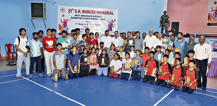 जिला बैडमिंटन एसोसिएशन के तत्वावधान में आयोजित 27वीं एसआर रुंगटा मेमोरियल जिला बैडमिंटन चैंपियनशिप का समापन हुआ. मुख्य अतिथि कोल्हान प्रमंडल के डीआइजी अनुरंजन किस्पोट्टा ने खिलाड़ियों को प्रेरित करते हुए कहा कि खिलाड़ियों ने शानदार खेल का प्रदर्शन किया है. उन्होंने कहा कि यहां के खिलाड़ी राज्य और राष्ट्रीय स्तर पर भी अपना नाम रोशन करेंगे. इसके लिए वे और अधिक मेहनत करें. विशिष्ट अतिथि एएसपी पारस राणा ने सभी प्रतिभागियों को और अधिक मेहनत करने की सलाह दी. मंच संचालन सचिव अशोक जोशी ने किया.डिस्क्लेमर: यह प्रभात खबर समाचार पत्र की ऑटोमेटेड न्यूज फीड है. इसे प्रभात खबर डॉट कॉम की टीम ने संपादित नहीं किया है