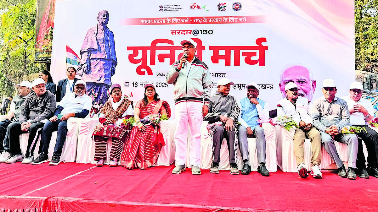 चाईबासा. लौह पुरुष सरदार वल्लभ भाई पटेल की 150वीं जयंती के उपलक्ष्य में मंगलवार को चाईबासा में यूनिटी मार्च का आयोजन हुआ. राज्यसभा सांसद आदित्य साहू ने पुराने उपायुक्त कार्यालय के समीप स्थापित सरदार पटेल की प्रतिमा पर माल्यार्पण व पुष्पांजलि अर्पित कर उनके योगदान का नमन किया. उन्होंने कहा कि सरदार पटेल भारत में राष्ट्रीय एकता के शिल्पकार थे. उनकी 150वीं जयंती युवाओं में राष्ट्र भावना जगाने का अवसर है. सरदार यूनिटी मार्च नया भारत, मजबूत भारत और एकजुट भारत का संकल्प है. उन्होंने बताया कि यह राष्ट्रीय अभियान पूरे देश में चल रहा है. चाईबासा के युवाओं, शैक्षणिक संस्थानों और सामाजिक संगठनों की उपस्थिति से अभियान को विशेष शक्ति मिली है. कार्यक्रम में महिला कॉलेज की प्रभारी प्राचार्या डॉ प्रतिभा सिन्हा, डीपीएस इंटर कॉलेज के प्राचार्य डॉ दीपेंद्र प्रसाद साहू, महिला कॉलेज एनएसएस कार्यक्रम पदाधिकारी डॉ अर्पित सुमन, डॉ हरीश, डॉ मुकुल व मेरा युवा भारत के जिला युवा अधिकारी अभिषेक आनंद तथा कार्यक्रम सहायक गिरिजानंद रत्नाकर, पूर्व मंत्री बड़कुंवर गागराई, पूर्व विधायक जवाहरलाल बानरा, भाजपा जिला अध्यक्ष संजय पांडेय, पूर्व जिला अध्यक्ष सतीश पुरी, राकेश बबलू शर्मा, प्रताप कटिहार, गीता बालमुचु, चंद्रमोहन तियु, पवन शर्मा, हेमंत केसरी, चंदा अग्रवाल, नीरज संदवार, नीरज अग्रवाल, प्रो हरीश कुमार, चेंबर ऑफ कॉमर्स, रेड क्रॉस सोसाइटी, मारवाड़ी युवा मंच, हिंदू जागरण मंच, राष्ट्रीय स्वयंसेवक संघ समेत विभिन्न उद्योग व्यापार संगठनों व विभिन्न सामाजिक संगठनों के प्रतिनिधि और विभिन्न स्कूलों के छात्र-छात्राएं शामिल थे.