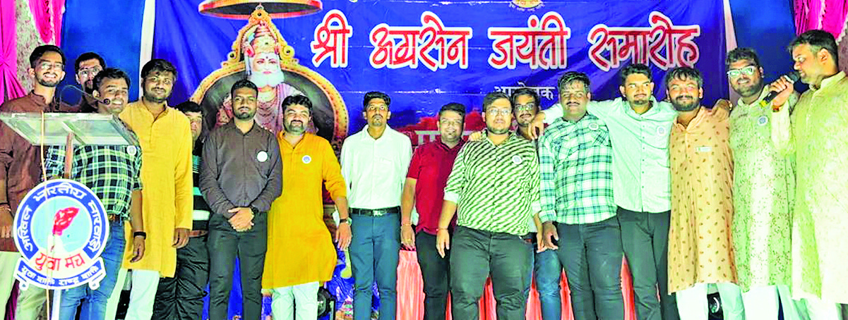 चक्रधरपुर. मारवाड़ी युवा मंच चक्रधरपुर की ओर से श्री अग्रसेन जयंती धार्मिक उत्साह के साथ मनायी गयी. इस अवसर पर आयोजित सांस्कृतिक कार्यक्रम में बच्चों ने अपनी प्रस्तुति से लोगों को मंत्रमुग्ध कर दिया. जयंती समारोह की शुरुआत फैंसी ड्रेस प्रतियोगिता से हुई. इसमें बच्चों ने रंग-बिरंगी वेशभूषा पहनकर आकर्षक प्रस्तुतियां दीं. इसके बाद सांस्कृतिक कार्यक्रम का आयोजन हुआ. मंच पर प्रस्तुत नृत्य, गीत और नाटिकाओं ने दर्शकों का मन मोह लिया. सांस्कृतिक कार्यक्रम का मूल्यांकन करने के लिए जज के रूप में अशोक लोहार और अमीषा साव उपस्थित रहे. इन्होंने प्रतिभागियों की प्रतिभा की सराहना की. सांस्कृतिक कार्यक्रम के बाद विजेताओं को सम्मानित कर उनकी हौसला अफजाई की गयी. कार्यक्रम के दौरान मंच के अध्यक्ष मयंक केडिया, सचिव आकाश काबरा, कोषाध्यक्ष बिपुल अग्रवाल सहित मोहित, ऋषभ मोहता भगेरिया, जतिन साह, प्रतीक साह, निशांत अग्रवाल, पीयूष अग्रवाल, शिवम अग्रवाल, सिद्धार्थ केजरीवाल, मनीष अग्रवाल, आयुष भगेरिया, अवध खिरवाल, संतोष अग्रवाल, नरेश केडिया, कमल खेतान, दीपु अग्रवाल समेत बड़ी संख्या में पदाधिकारी एवं सदस्य मौजूद रहे. इस अवसर पर वक्ताओं ने श्री अग्रसेन के आदर्शों और सिद्धांतों को समाज के लिए प्रेरणास्रोत बताया. युवाओं को उनके पदचिह्नों पर चलने का आह्वान किया.