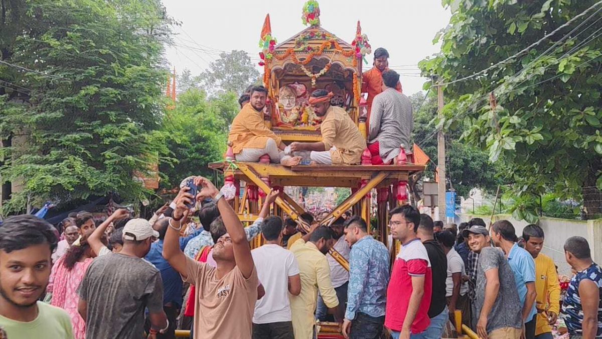 महाप्रभु जगन्नाथ अपने भाई बलभद्र व बहन सुभद्रा के साथ शनिवार को रथ पर सवार होकर मौसी बाड़ी न्यू टाउनशिप पूजा पंडाल से डीवीसी स्थित जगन्नाथ मंदिर रवाना हुए. इस दाैरान भक्तों की भारी भीड़ उमड़ी. जय जगन्नाथ के जयकारों से नोवामुंडी शहर गूंज उठा. रिमझिम बारिश के बीच भक्तों ने रथ की रस्सी को खींचा. वहीं कीर्तन मंडली कीर्तन करते साथ-साथ चल रही थी. रथ यात्रा न्यू टाउनशिप से निकलकर, टॉप कैंप, पुराना हॉस्पिटल, फूड प्लाजा, बाली झरण, कोऑपरेटिव स्टोर, गोरखा हाटिंग, सेंटर कैंप, डीएवी स्कूल, टाटा मेन गेट होते हुए डीवीसी जगन्नाथ मंदिर पहुंची. वहां, बारी-बारी से जगन्नाथ महाप्रभु भाई बलभद्र और बहन सुभद्रा की त्रिमूर्ति को रथ से उतार कर विधि विधान के साथ मंदिर में स्थान दिया गया. उसके बाद पंडित जयराम मिश्रा ने पूजा-अर्चना की.रिमझिम बारिश में मौसीबाड़ी से घर लौटे महाप्रभु, उमड़ी भीड़