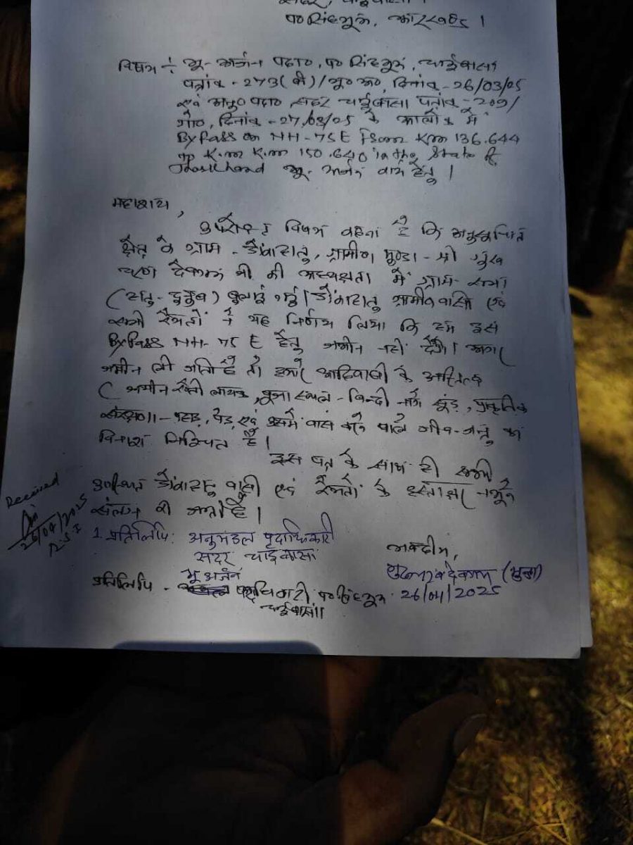 Chaibasa News : डोंकासाई में रिंग रोड के लिए ग्रामीणों ने जमीन देने से किया इनकार