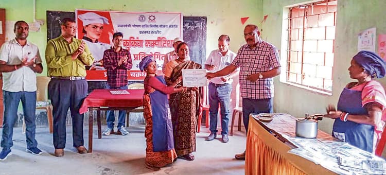 प्रधानमंत्री पोषण शक्ति निर्माण योजना के तहत गुरुवार को प्रखंड संसाधन केंद्र चक्रधरपुर में प्रखंड स्तरीय कुकिंग प्रतियोगिता का आयोजन किया गया. इसमें प्रखंड के विभिन्न विद्यालयों की रसोइयों ने पौष्टिक, स्वादिष्ट और संतुलित भोजन तैयार कर अपनी प्रतिभा का प्रदर्शन किया. कार्यक्रम में बीडीओ कांचन मुखर्जी मुख्य अतिथि के रूप में उपस्थित थे. मंच पर अनुमंडल चिकित्सा पदाधिकारी डॉ अंशुमन शर्मा, प्रखंड कार्यक्रम पदाधिकारी बलराज कपूर और प्रखंड मध्याह्न भोजन प्रभारी काली किंकर महतो समेत अन्य मौजूद थे. प्रतियोगिता में प्रतिभागियों ने मध्याह्न भोजन योजना के तहत बच्चों को दाल-चावल, हरी सब्जियां, खिचड़ी, सोया और मौसमी सब्जियों से बने पौष्टिक व्यंजन प्रस्तुत किये. निर्णायकों द्वारा स्वाद, पोषकता, स्वच्छता और प्रस्तुति को आधार पर मूल्यांकन किया. मध्य विद्यालय महुलपानी की जुलिन बांदिया और उत्क्रमित मध्य विद्यालय अंचल कॉलोनी की सुनीता देवी को संयुक्त रूप से प्रथम स्थान मिला. विजेताओं को प्रशस्ति पत्र और नकद राशि देकर पुरस्कृत किया गया. कार्यक्रम में अतिथियों ने कहा कि यह योजना बच्चों को पौष्टिक भोजन उपलब्ध कराने की दिशा में महत्वपूर्ण कदम है. ऐसी प्रतियोगिताओं से रसोइयों में उत्साह और गुणवत्ता सुधार की भावनाएं बढ़ती हैं. कार्यक्रम का संचालन महेन्द्र लाल गुप्ता ने कियाडिस्क्लेमर: यह प्रभात खबर समाचार पत्र की ऑटोमेटेड न्यूज फीड है. इसे प्रभात खबर डॉट कॉम की टीम ने संपादित नहीं किया है