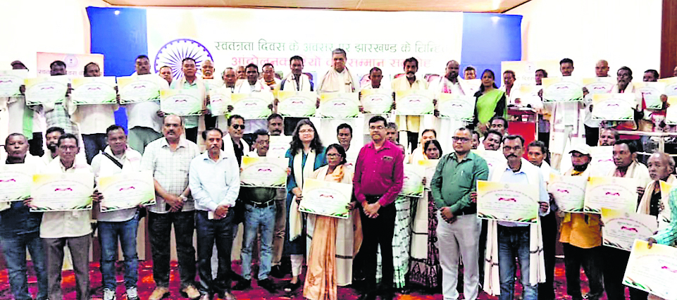 सम्मान समारोह में डीसीएलआर केके मुंडु, सीओ सुरेश सिन्हा, मनोहरपुर सीओ प्रदीप कुमार तथा चक्रधरपुर बीडीओ कांचन मुखर्जी ने संयुक्त रूप से सभी आंदोलनकारियों को प्रशस्ति पत्र एवं शॉल ओढ़ाकर सम्मानित किया. इस अवसर पर सर्वाधिक 41 आंदोलनकारी मनोहरपुर अंचल से थे. इसके अलावा चक्रधरपुर से 26, गोइलकेरा से 3, सोनुआ से 1, बंदगांव से 5 से गुदड़ी से 2 को सम्मानित किया गया.