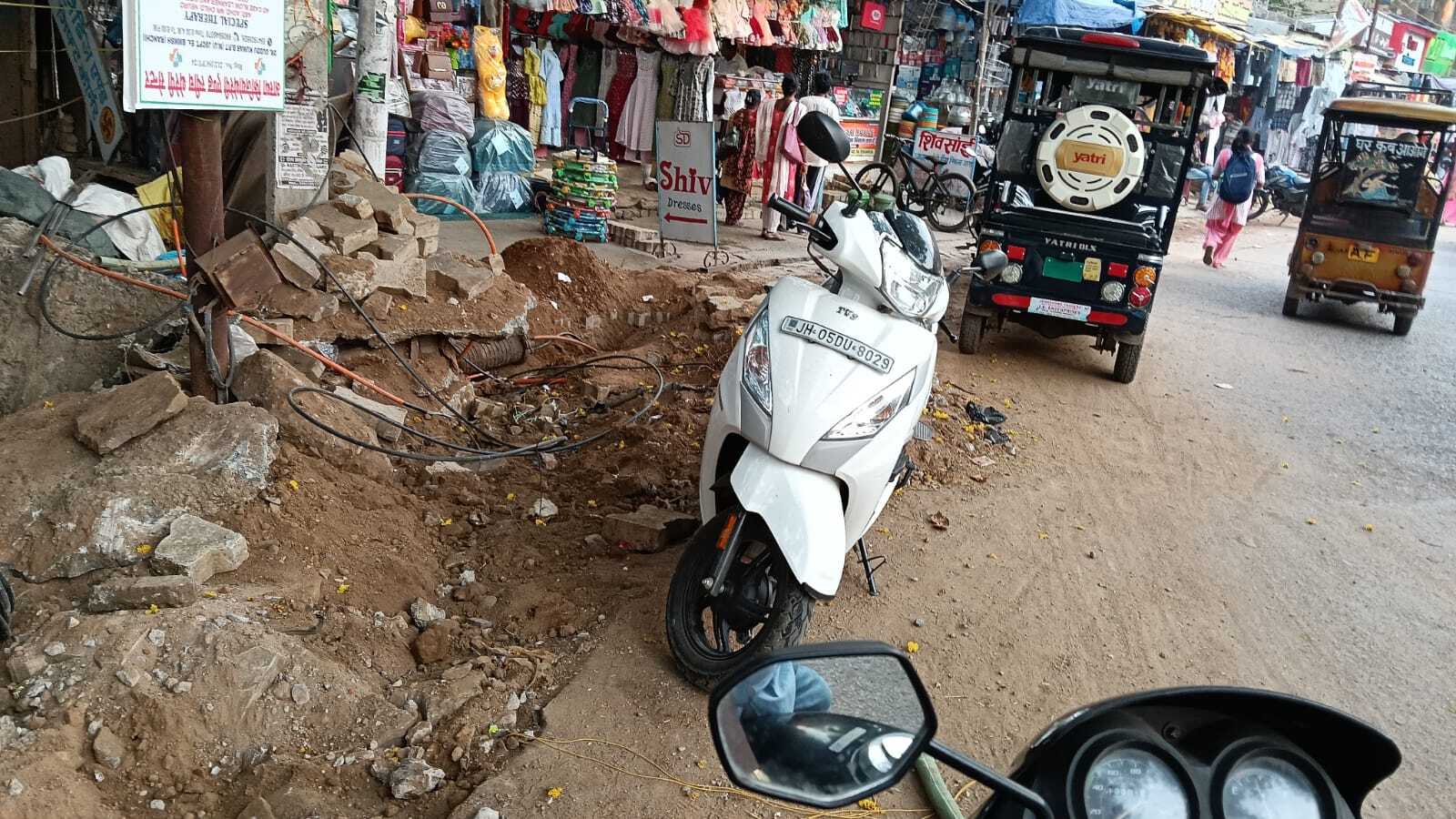 चाईबासा.चाईबासा नगर परिषद कार्यालय से बस स्टैंड मार्ग पर पेयजल योजना से जुड़े पाइप बिछाने के लिए सड़क किनारे के पेवर्स ब्लॉक उखाड़ दिये गये हैं. इससे दुकानदारों को परेशानी हो रही है. वहीं, लोगों को आवागमन में दिक्कत हो रही है. नगर परिषद के संवेदक ने एक सप्ताह पहले फुटपाथ को उजाड़ दिया. नीचे बिछे टेलीफोन तार भी उखड गये हैं. लोगों को परेशानी का सामना करना पड़ रहा है.दुकानदारों व राहगीरों ने बताया कि सड़क की चौड़ाई पहले से कम है. फुटपाथ खोद देने से दिक्कत हो गयी है. स्थानीय लोगों को कहना कि पता नहीं कब तक परेशानी उठानी पड़ेगी ? शहर में कई जगह पाइप बिछाने के लिए सड़क खोदी गयी, लेकिन महीनों बाद दुरुस्त कराया जा रहा है.