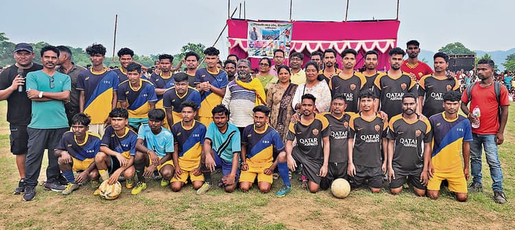 चक्रधरपुर की सिलफोड़ी पंचायत के शांतिनगर मैदान में आदिवासी छात्र संघ द्वारा तीन दिवसीय फुटबॉल प्रतियोगिता का आयोजन किया गया था. प्रतियोगिता का फाइनल मुकाबला रविवार को खेला गया. जहां मुख्य अतिथि पंचायत मुखिया मेलानी बोदरा, बाईपी पंचायत की मुखिया पिंकी जोको, पूर्व मुखिया मंजूश्री तियू व ग्रामीण मुंडा लोकनाथ सामड ने कल्याण मंच बुढ़ीगोड़ा और दी लीजेंड इज बैक टू फाइट के खिलाड़ियों से परिचय प्राप्त किया. जहां फाइनल मुकाबला में दी लीजेंड इज बैक टू फाइट की टीम ने कल्याण मंच बुढ़ीगोड़ा को 2-0 से हराकर मैच अपने नाम किया. जबकि 40 प्लस फुटबॉल प्रतियोगिता साधु बाबा बनाम आयुष स्पोर्टिंग के बीच खेला गया. जहां साधु बाबा की टीम ने आयुष स्पोर्टिंग की टीम को 2-0 से हराकर यह मुकाबला जीत लिया. मौके पर मुख्य अतिथि मुखिया मेलानी बोदरा और अन्य अतिथियों ने विजेता टीम दी लीजेंड इज बैक टू फाइट की टीम को नकद 40 हजार, उप विजेता कल्याण मंच बुढ़ीगोड़ा को 20 हजार व 40 प्लस के विजेता टीम साधु बाबा की टीम को 12 हजार और उपविजेता को 7 हजार रुपये नकद इनाम देकर पुरस्कृत किया. मौके पर मनोज बानसिंह, सूरज गोप, जगमोहन गोप, रवि बोदरा, कृष बानसिंह, फुटुस बोदरा समेत अन्य उपस्थित थे.डिस्क्लेमर: यह प्रभात खबर समाचार पत्र की ऑटोमेटेड न्यूज फीड है. इसे प्रभात खबर डॉट कॉम की टीम ने संपादित नहीं किया है