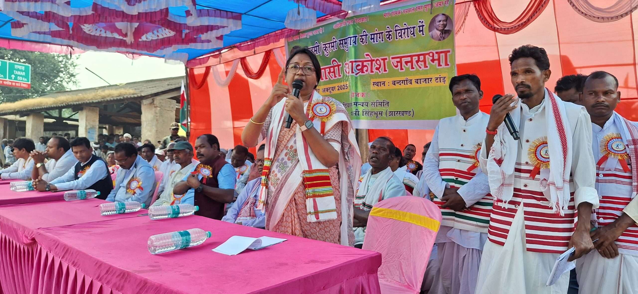 इस मौके पर खूंटी समन्वय समिति के अध्यक्ष चंद्र प्रभात मुंडा ने कहा कि बाहरी पूंजीपतियों के इशारे पर कुड़मी समाज के तथाकथित नेताओं द्वारा राजनीतिक लाभ लेने के लिए कुड़मी समाज के लोगों को भटका रहे हैं. इससे झारखंड का सौहार्द्र बिगड़ रहा है. पूर्व मंत्री गीताश्री उरांव ने कहा कि हम आदिवासियों को भारत में अपनी विशिष्ट पहचान और समन्वय बनाने की जरूरत है. अब जरूरत आ गयी है कि अपने हक एवं अधिकार के लिए आदिवासी समाज को लड़ना होगा. अपना अधिकार किसी को नहीं देना है. जिप सदस्य जसफीन हमसाय ने कहा कि आदिवासियों का हक और अधिकार केवल सामाजिक आंदोलन से ही बचाया जा सकता है.