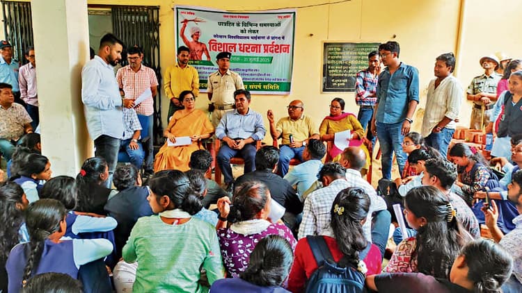 कोल्हान छात्र संघर्ष समिति के बैनर तले विद्यार्थियों ने 15 सूत्री मांगों को लेकर गुरुवार को कोल्हान विश्वविद्यालय का घेराव किया. मध्याह्न करीब 12 बजे छात्र-छात्राएं टाटा कॉलेज परिसर से हाथों में तख्ती लेकर नारेबाजी करते हुए विश्वविद्यालय के प्रशासनिक भवन पहुंचे. यहां दोपहर 2 बजे तक मांगों के समर्थन में धरना व नारेबाजी की गयी. ‘जब-जब छात्र बोला है, राज सिंहासन डोला है, कोल्हान विश्वविद्यालय की मनमानी नहीं चलेगी. विश्वविद्यालय प्रशासन होश में आओ’ आदि नारे लगाये गये. बाद में प्रॉक्टर, डीएसडब्ल्यू, रजिस्ट्रार आदि विद्यार्थियों से मिलने पहुंचे. उन्हें अपनी बात ऊपर चलकर कुलपति से कहने को कहा. छात्रों ने कहा कि कुलपति को आकर बातें सुनकर जवाब देना होगा. इसके बाद कुलपति प्रो. डॉ अंजिला गुप्ता, प्रॉक्टर डॉ राजेन्द्र भारती, डीएसडब्ल्यू डॉ संजय यादव, परीक्षा नियंत्रक प्रो. रिंकी दोराई छात्रों के बीच पहुंचे. कुलपति ने करीब दो घंटे तक बैठकर बारी-बारी से 15 मांगों को सुना. दो दिनों के भीतर आवश्यक पहल करते हुए समस्याओं के समाधान का आश्वासन दिया. इसके बाद विद्यार्थी वापस लौट गये. इसमें चक्रधरपुर, चाईबासा व सरायकेला के विद्यार्थियों ने भाग लिया. मांग पत्र की कॉपी राज्यपाल, मुख्यमंत्री सहित सभी मंत्रियों को भेजी गयी है.महिला व पुरुष पुलिस जवान थे तैनात