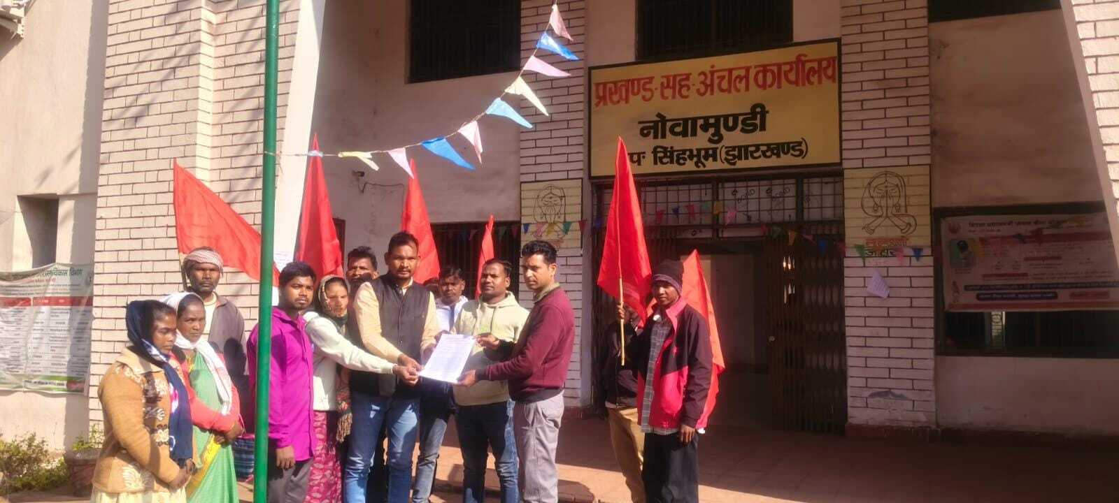 नोवामुंडी. नोवामुंडी प्रखंड कार्यालय में आदिवासी किसान मजदूर पार्टी की ओर से शुक्रवार को जिप सदस्य मानसिंह तिरिया के नेतृत्व में धरना-प्रदर्शन किया गया. प्रदर्शन की अध्यक्षता आदिवासी किसान मजदूर पार्टी के प्रखंड अध्यक्ष बिंदराय सुरेन ने की. प्रदर्शनकारियों ने बीडीओ के माध्यम से राष्ट्रपति और राज्यपाल के नाम ज्ञापन सौंपकर मजदूरों के अधिकार, रोजगार और जॉन मिरन मुंडा की रिहाई की मांग की. ज्ञापन में आरोप लगाया गया कि जॉन मिरन मुंडा मजदूरों के हक के लिए बड़ी कंपनियों के खिलाफ आवाज उठा रहे थे, जिससे घबराकर जिला प्रशासन व जनप्रतिनिधि बार-बार झूठे मामलों में जेल भेजते रहे हैं.