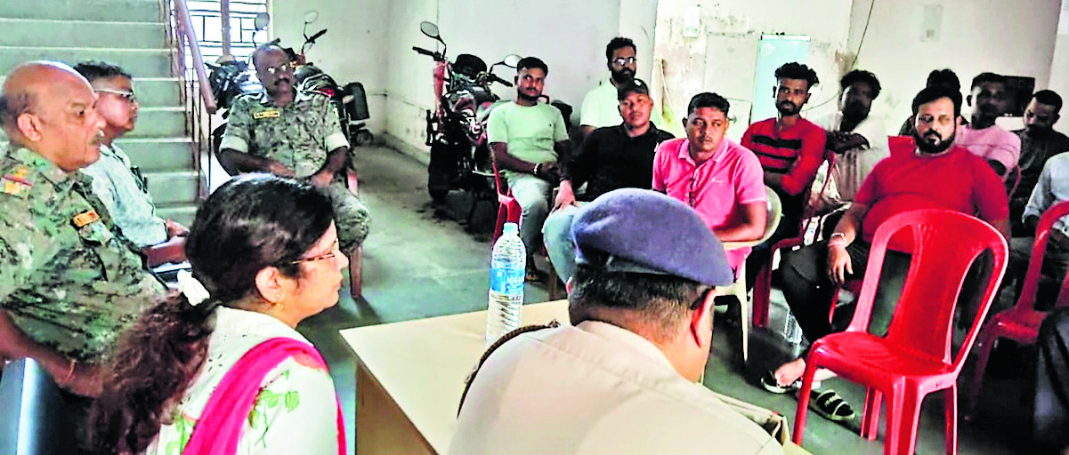 आनंदपुर थाना में शांति समिति की बैठक बीडीओ नाजिया अफरोज की अध्यक्षता में हुई. इस अवसर पर दुर्गा पूजा के दौरान शांति व्यवस्था कायम रखने पर चर्चा की गई. दुर्गा पूजा के दौरान सार्वजनिक पूजा समिति, बजरंग दल आनंदपुर और मुंडा टोला पूजा कमेटी द्वारा आयोजित कार्यक्रम और विसर्जन जुलूस को समय पर समापन करने का विचार-विमर्श किया गया. थाना प्रभारी प्रिंस झा ने सरकारी निर्देश का पालन करते हुए सौहार्द्र वातावरण में दुर्गा पूजा मनाने की सलाह दी. श्री झा ने कहा कि विसर्जन जुलूस में डीजे बजाने पर प्रतिबंध रहेगा. पूजा कमेटी निर्धारित मार्ग से विसर्जन जुलूस निकालकर तय समय पर विसर्जन करेगी. मौके पर प्रमुख दिलवर खाखा, प्रताप रुद्र सिंहदेव, शिव प्रताप सिंहदेव, विभुंद्र नारायण सिंहदेव, अमित गंताइत, प्रकाश देहरी, विमल साहू, बिट्टू साहू, विक्की साहू, मौजूद थे. पूजा में शांति भंग करने वालों के विरुद्ध होगी कार्रवाईचिरिया.