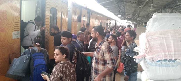 दुर्गा पूजा में ट्रेनों में भारी भीड़ चल रही है. शनिवार को भारी भीड़ व लंबी वेटिंग को देखकर कई यात्रियों ने अपनी यात्रा स्थगित कर दी. कई यात्री ट्रेनों के टॉयलेट के सामने बैठकर घर जाते देखे गये. रविवार से दुर्गा पूजा धूमधाम से शुरू हो जायेगी. शनिवार से रेलकर्मियों ने पूजा की छुट्टी लेकर अपने घरों की ओर रुख कर रहे हैं. भीड़ को देखते हुए ट्रेनों में अतिरिक्त कोच की व्यवस्था नहीं की गयी है.तत्काल के जरिये कंफर्म सीट की उम्मीद में लोग