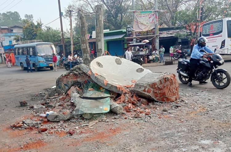 कोल वाहन ने गोलंबर को ठोका, नेताजी की प्रतिमा ध्वस्त