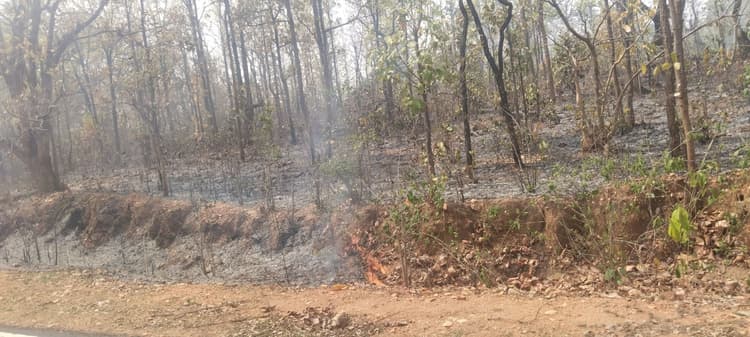 धू धू कर जल रहा लोबगा जंगल, झुलस रहे पेड़-पौधे