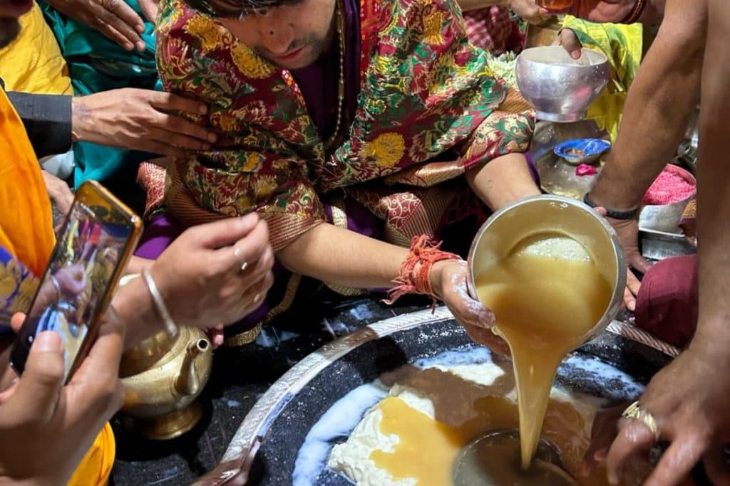 धीरेंद्र शास्त्री ने शिवलिंग का रूद्राभिषेक किया.