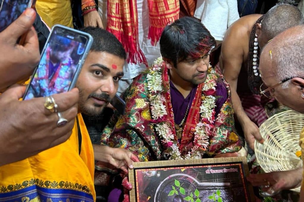बाबा बाघेश्वर को मंदिर की तरफ से शिवलिंग की प्रतिमा भेंट की गई.