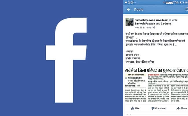 देवघर: 25 नवंबर को मुख्यमंत्री पंचायत प्रोत्साहन योजना के तहत देवघर जिला परिषद को सर्वश्रेष्ठ जिला परिषद केे रूप में पुरस्कार दिया गया. मुख्यमंत्री रघुवर दास ने देवघर जिला परिषद को 10 लाख रुपये पुरस्कार राशि दी है. जिला परिषद को सर्वश्रेष्ठ पुरस्कार मिलने की घोषणा को जिप उपाध्यक्ष संतोष पासवान ने अपने फेसबुक पेज पर पोस्ट कर सच्चे मेहनत का परिणाम बताया है.