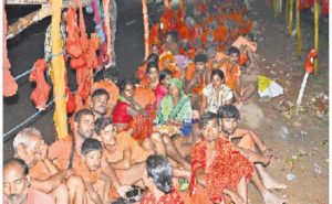 देर रात कांवरियों की कतार पहुंची कुमैठा स्टेडियम रोड