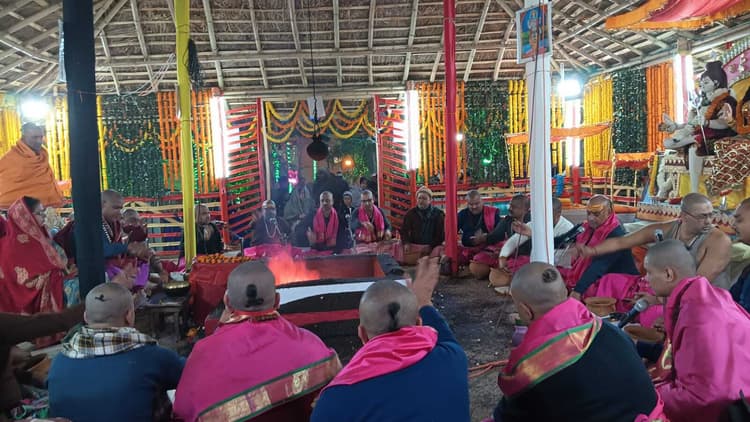 संवाददाता, देवघर : बमबम बाबा पथ स्थित वीआइपी लॉज में एक ओर मां शाकंभरी दुर्गा की प्रतिमा स्थापित कर पूजा-अर्चना की जा रही है, वहीं दूसरी ओर सात दिवसीय शिव शक्ति हवनात्मक महायज्ञ का भी आयोजन किया गया है. इसमें 25 वैदिकों द्वारा सुबह नौ बजे से लेकर दोपहर एक बजे तक महारूद्र यज्ञ किया जा रहा है. इसके बाद दोपहर तीन बजे से लेकर शाम छह बजे तक मां दुर्गा सप्तशती महायज्ञ किया जा रहा है. इसमें बड़ी संख्या में यज्ञ स्थल पर लोग पहुंच रहे हैं. साथ ही माता शाकंभरी दुर्गा की प्रतिमा के दर्शन के लिए भी पहुंच रहे हैं. प्रतिदिन शाम को सांस्कृतिक कार्यक्रम का भी आयोजन किया गया है, जिसमें सोमवार को चंदन चटर्जी, भावना व आशीष झा ने भजन प्रस्तुत किये. इसकी शुरुआत गणेश वंदना से की गयी. इसके बाद चलो बुलावा आया है माता ने बुलाया है…, आशीष झा व चंदन चटर्जी ने भी एक से बढ़कर एक भजन प्रस्तुत किये. श्रोताओं को अपने भजनों की प्रस्तुति से झूमने पर विवश कर दिया. देर रात तक यह कार्यक्रम चला. कार्यक्रम को सफल बनाने में शाकंभरी दुर्गा पूजा समिति के सभी सदस्य दिन-रात लगे हुए हैं.