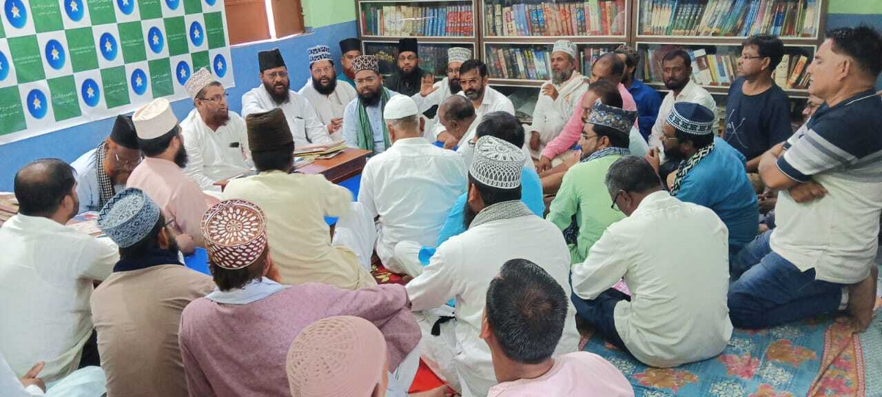 मधुपुर. शहर के चांदमारी स्थित मदरसा सिराजुल इस्लाम परिसर में मंगलवार को जश्ने ईद मिलादुन्नबी मनाये जाने को लेकर बैठक की गयी, जिसकी अध्यक्षता हजरत मौलाना हाजी यासीन फैजी ने की. बैठक में जुलूस-ए-मोहम्मदी के आयोजन को लेकर विस्तार से चर्चा की गयी. बैठक में निर्णय लिया गया कि मोहल्ले के सभी समिति अपने इलाकों से जुलूस निकालेंगे. जुलूस डाक बंगला मैदान में एकत्रित होगा. बताया कि जुलूस को उलेमा-ए-किराम नबी-ए-पाक की तकरीर करेंगे. मौके पर मौलाना हाजी यासीन फैजी ने जुलूस में सभी लोग शामिल होंगे. कहा कि जुलूस अनुशासन व भाईचारे के साथ शहर में भ्रमण किया जायेगा. नारेबाजी में किसी तरह की ऐसी बात न कही जाए जिससे किसी को ठेस पहुंचे. शहर के विभिन्न मोहल्लों, गलियों और मस्जिदों को सजाया जायेगा. मौके पर विधायक प्रतिनिधि शब्बीर अंसारी, मौलाना हाजी फारूक अहमद, मौलाना अजमल नूरी, मौलाना मुफ्ती परवेज आलम मिस्बाही, मुस्लिम अख्तर शिवानी, मौलाना यूजैर अहमद अशरफी, मौलाना हाजी खुर्शीद आलम मिस्बाही, मौलाना मो. सद्दाम हुसैन, मदरसा के सचिव सरफराज अहमद अशरफी, मुफ्ती अतिकुर रहमान, मौलाना जमील अख्तर, हाफिज जमीरुद्दीन, एनुल हुदा, इमरान अशरफी, मुफ्ती इरफान आदि मौजूद थे. हाइलार्ट्स : ईद मिलादुन्नबी की तैयारी को लेकर मदरसा सिराजुल इस्लाम में हुई बैठक