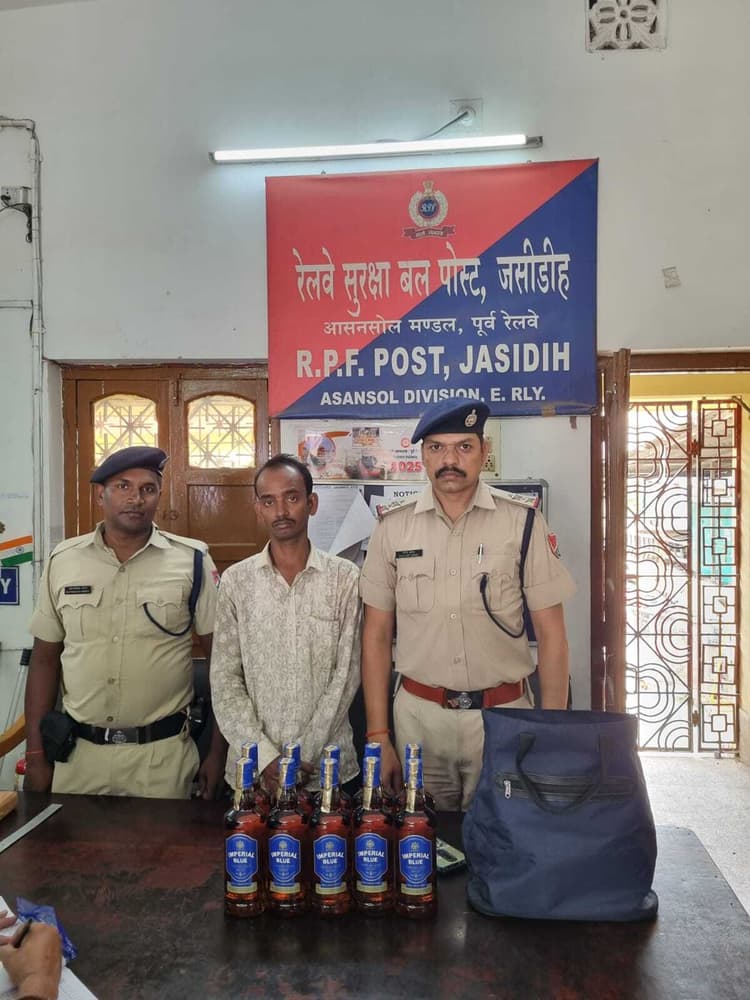 प्रतिनिधि,जसीडीह. साउथ बिहार एक्सप्रेस ट्रेन की बोगी से आरपीएफ ने शनिवार की सुबह को एक बैग विदेशी शराब बरामद किया. आरपीएफ ने शराब के साथ एक व्यक्ति को भी गिरफ्तार किया है. इसके बाद आरोपी पश्चिम बंगाल के पश्चिम बर्दवान जिला के हीरापुर थाना क्षेत्र निवासी सोमनाथ नमता व जब्त शराब को टीम ने जसीडीह आरपीएफ को सौंप दिया है. आरपीएफ ने शराब व आरोपी को गिरफ्तार कर कार्रवाई के लिये उत्पाद विभाग के सुपुर्द किया हैं, जहां आरोपी के विरुद्ध कार्रवाई की जा रही है. जानकारी के अनुसार एएसआइ अमरेंद्र कुमार अन्य आरपीएफ कर्मी के साथ ट्रेन नंबर 13287 साउथ बिहार एक्सप्रेस में गश्ती के लिए जा रहे थे. इसी क्रम में चितरंजन स्टेशन के पास ट्रेन के एस-1 बोगी में देखा कि एक व्यक्ति बैग लेकर संदिग्ध अवस्था में था, जिसे टीम ने पकड़ कर जांच पड़ताल की तो उसके बैग से शराब बरामद हुआ. इसके बाद उसे हिरासत में लेकर आरपीएफ थाना ले गये, जहां जांच के दौरान बैग से 10 बोतल शराब बरामद की, जिसकी अनुमानित कीमत करीब 6500 रुपये है. आरोपी शराब लेकर बिहार में बेचने जा रहा था. आरपीएफ ने आरोपी को गिरफ्तार कर उत्पाद विभाग को सौंप दिया है.
