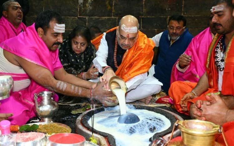 Amit Shah Deoghar News: केंद्रीय गृह एवं सहकारिता मंत्री अमित शाह ने शनिवार को देवों की नगरी देवघर में षोडशोपचार विधि से बाबा बैद्यनाथ की पूजा-अर्चना की. श्री शाह दिन में विशेष विमान से देवघर एयरपोर्ट पहुंचे. यहां से वह सीधे बाबा बैद्यनाथ के मंदिर पहुंचे. मंदिर में उन्होंने पत्नी के साथ बाबा की षोडशोपचार विधि से पूजा की. उनका अभिषेक किया.