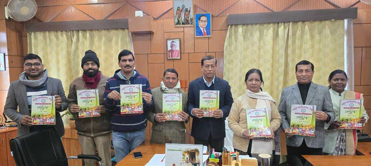 मधुपुर. मधुपुर महाविद्यालय की ओर से प्रकाशित पत्रिका मधुप के द्वितीय संस्करण का विधिवत विमोचन सिदो कान्हू मुर्मू विश्वविद्यालय की कुलपति प्रो. डॉ कुनुल कंडीर के द्वारा दुमका में किया गया. वहीं, कार्यक्रम में विश्वविद्यालय और महाविद्यालय के अनेक शिक्षाविद् शामिल हुए. इस विशेष अवसर पर विश्वविद्यालय के प्रोक्टर डॉ. राजीव कुमार, डीएसडब्ल्यू डॉ. जैनेंद्र प्रसाद, परीक्षा नियंत्रक डॉ. रीना नीलिमा लकड़ा, एनएसएस समन्वयक डॉ. धनंजय मिश्रा, पीआरओ दीपक कुमार, मधुपुर महाविद्यालय के प्राचार्य डॉ. रत्नाकर भारती, बर्सर डॉ. रंजीत कुमार सहित राम चंद्र झा उपस्थित रहे. बताते चलें कि इस पत्रिका में महाविद्यालय के शिक्षकों व छात्रों के द्वारा लिखी गई लेख व कविता को प्रकाशित किया गया है. विमोचन समारोह को संबोधित करते हुए कुलपति प्रो. डॉ. कुनुल कांडीर ने “मधुप” के द्वितीय संस्करण के सफल प्रकाशन के लिए महाविद्यालय के प्राचार्य एवं उनकी पूरी टीम को हार्दिक बधाई दी है. कुलपति ने कहा कि जब शिक्षक और छात्र मिलकर साहित्यिक गतिविधियों को आगे बढ़ाते हैं, तो शिक्षा केवल पाठ्यक्रम तक सीमित नहीं रहती, बल्कि वह समाज और विचारों को दिशा देने का कार्य करती है. कहा कि “मधुप” का यह द्वितीय संस्करण निश्चित रूप से आने वाले समय में महाविद्यालय की साहित्यिक पहचान को और सशक्त बनाएगा तथा विद्यार्थियों के भीतर छिपी प्रतिभाओं को उभारने का नया मंच प्रदान करेगा.