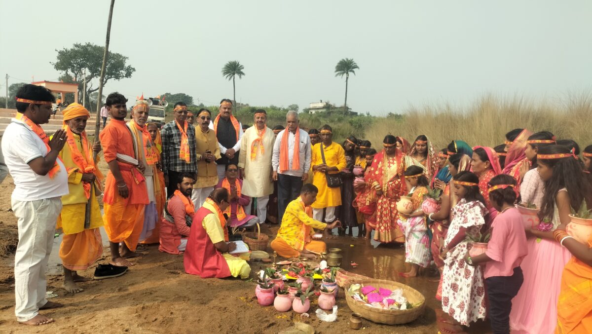 सारठ. राम चरित मानस आश्रम पुरुषोत्तमधाम का तीन दिवसीय वार्षिक विवाह पंचमी महोत्सव को लेकर प्रथम दिन मंगल कलश यात्रा का आयोजन किया गया. 101 महिलाये व कुंवारी कन्याएं माथे में कलश लेकर गाजे-बाजे के साथ राम चरित मानस आश्रम पुरुषोत्तम धाम परिसर से निकली. उसके बाद छठ घाट नदी पर पहुंची, जहां आचार्य पंडित राधाकांत तिवारी ने यजमान पवन कुमार सिन्हा को विधिवत वरुण देव सहित विभिन्न देव देवी का आवाहन कर पूजन करा कर जल भरा भरा गया. इसके बाद नदी से जल भर कर जय श्री राम, हर-हर महादेव के जयघोष के साथ काली मंदिर, दुःख हरणनाथ महादेव मंदिर होते हुए आश्रम पहुंचा. जहां मंगल कलश पूजन के बाद महाप्रसाद भोजन कराया गया. संध्या समय आचार्य रामानुज शास्त्री का रामकथा प्रवचन प्रारंभ हुआ जो 25 तक चलेगा. तीन दिवसीय विवाह पंचमी के दूसरे दिन रामर्चा (राम दरबार ) का भव्य पूजन व 56 भोग अर्पण किया जाएगा. साथ ही तीसरे दिन संध्या में भव्य राम बारात का आयोजन होगा तथा देर रात्रि राम-सीता का विवाह कराया जाएगा. मौके पर मुख्य रूप से मंहत रामदास बाबा, कार्तिक राजहंस, राजेश राजहंस, किशोरी पोद्दार, मिथिलेश सिन्हा, उत्तम शर्मा, रामदेव साह, प्रदीप सिन्हा, परमेश्वर मंडल, ओम प्रकाश मंडल, शिव शंकर मंडल, छोटेलाल साह, संतोष तिवारी, अरबिंद आजाद आदि मौजूद थे. हाइलार्ट्स : तीन दिवस विवाह पंचमी महोत्सव कलश यात्रा के साथ शुरू, रात्रि समय राम कथा का आयोजन आज होगा भव्य रामर्चा पूजन,56 भोग अर्पित राम चरित मानस आश्रम पुरुषोत्तम धाम में वैदिक मंत्रोच्चार से बह रही है भक्ति की अविरल धारा