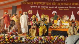 आरएल सर्राफ स्कूल के मैदान में आयोजित अतिरुद्र महायज्ञ एवं श्रीमद् भागवत कथा ज्ञान यज्ञ का सातवां दिन अध्यात्म, भक्ति और भव्यता से ओत-प्रोत रहा.