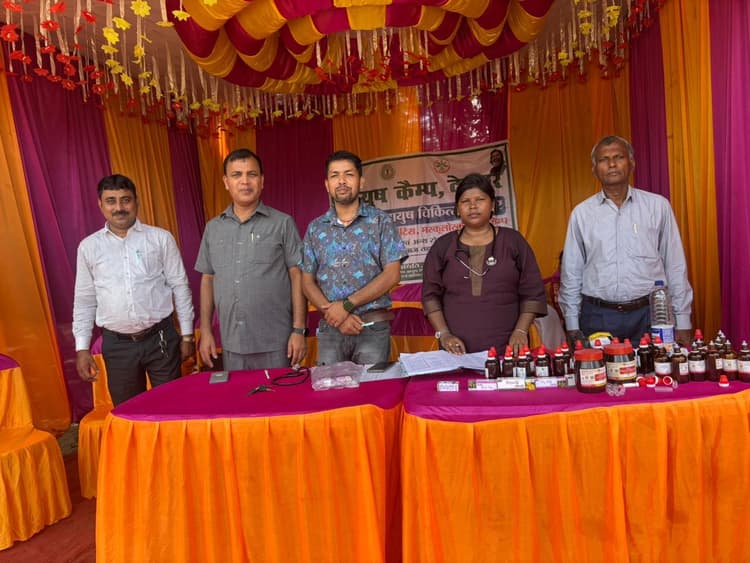 सारवां. ब्लॉक में बुधवार को राष्ट्रीय आयुष मिशन झारखंड के तहत जिला आयुष समिति देवघर की ओर से दो दिवसीय प्रखंड आयुष चिकित्सा शिविर का आयोजन किया गया. कार्यक्रम का उद्घाटन जिला आयुष पदाधिकारी जगदीश सिंह, डीपीएम डाॅ सुबोध प्रताप सिंह, डॉ ललिता कुमारी, डॉ जैकी शेखर ने संयुक्त रूप से किया. इस अवसर पर शिविर में अर्थराइटिस, मस्क्यूलोस्केलेटल कैंप में वात रोग, नस रोग के साथ अन्य बीमारियों का शिविर में नि: शुल्क इलाज किया गया व दवा का वितरण किया गया. वहींं, जांच के लिए बीडीओ रजनीश कुमार पहुंचे. उपस्थित लोगों को जागरुक करते हुए कहा होम्योपैथिक की दवा सुविधाजनक एवं बेहतर होता है. शिविर में इसका लाभ उठायें. प्रखंड क्षेत्र के विभिन्न गांव से लोगों ने पहुंचकर अपना इलाज शिविर में कराया. मौके पर प्रखंड क्षेत्र की सहिया व मरीज मौजूद थे. इसकी जानकारी देते डाॅ जैकी शेखर ने बताया पहले दिन 140 मरीजों का इलाज कर दवा दी गयी.