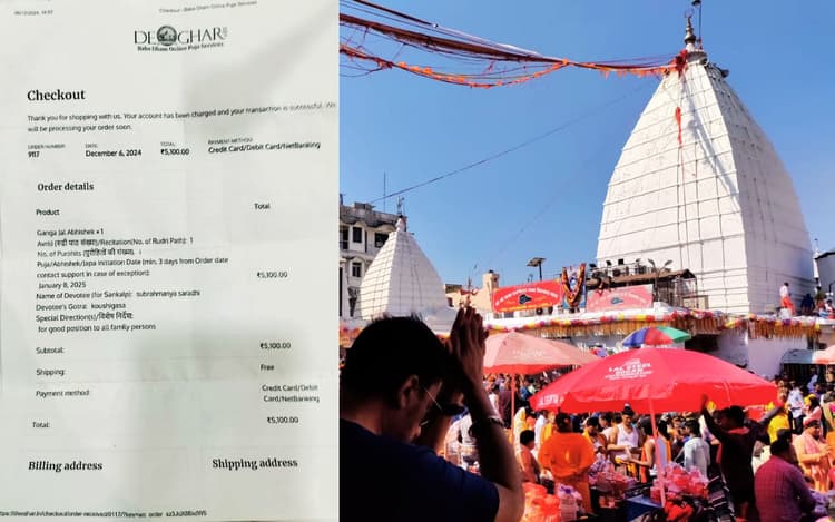 Babadham Online Darshan Puja Fraud: बाबा बैद्यनाथ मंदिर में ऑनलाइन पूजा के नाम पर (बाबाधाम ऑनलाइन पूजा सर्विसेस) फर्जी वेबसाइट बनाकर देश-विदेश के हजारों श्रद्धालुओं से करोड़ों रुपये की ठगी का मामला सामने आया है. शिकायत मिलने के बाद पुलिस मामले की जांच में जुट गयी है. पुलिस ने वेबसाइट संचालक से पूछताछ की है. इस मामले का खुलासा तब हुआ, जब इस वेबसाइट के माध्यम से बुकिंग कराकर यात्री बाबा मंदिर पहुंचे. हैदराबाद से 5 यात्री बाबा मंदिर आये और ऑनलाइन साइट पर दिये गये मोबाइल नंबर से संपर्क किया. संपर्क नहीं होने पर ये सभी यात्री मंदिर कंट्रोल रूम गये और बुकिंग के बारे में जानकारी दी. यात्रियों की बातें सुनकर वहां मौजूद सभी लोग चौंक गये.