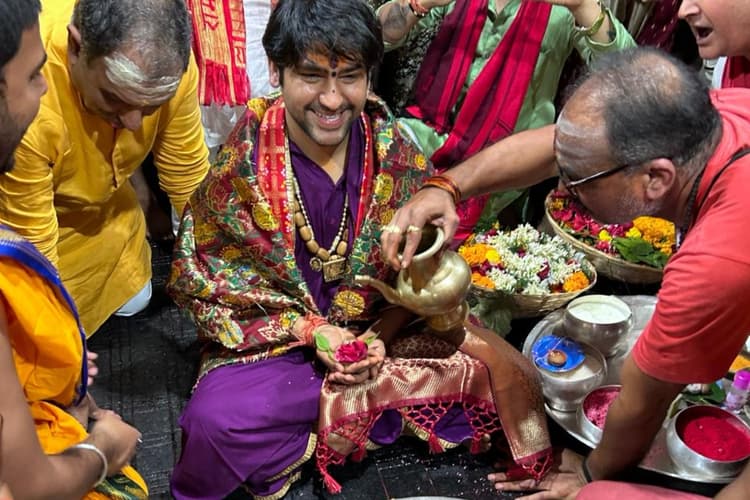 धीरेंद्र शास्त्री ने शिवलिंग का रूद्राभिषेक किया.