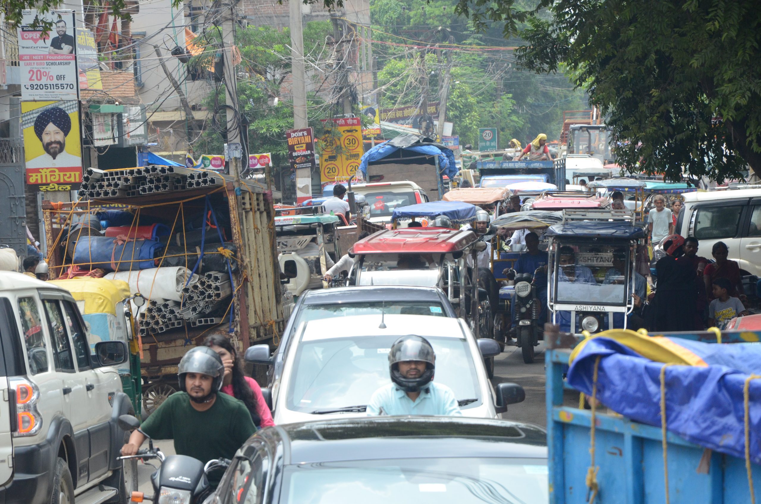 वरीय संवाददाता, देवघर : श्रावणी मेला समाप्त होते ही देवघर शहर की सड़कों पर जाम का संकट शुरू हो गया है. सोमवार को दोपहर 12 बजे से एक बजे के बीच बाजला चौक और आसपास के इलाकों में वाहनों की लंबी कतारें लगी रहीं. खासकर स्कूल की छुट्टी के समय तो स्थिति और बिगड़ गयी. लोगों को 10 मिनट की दूरी तय करने में एक घंटे से अधिक समय लग गये. शहर के प्रमुख मार्गों पर चारों ओर वाहन रेंगते रहे. शिक्षा सभा चौक इलाके में भी जाम की गंभीर स्थिति रही. यहां एक श्रद्धालु की स्कॉर्पियो को यातायात पुलिस ने क्रेन से हटाया. कई स्कूल बसें भी जाम में फंसी रहीं. प्रारंभिक दौर में बाजला चौक पर जाम हटाने के लिए कोई पुलिसकर्मी मौजूद नहीं था. बाद में सूचना मिलने पर पुलिस पहुंची और धीरे-धीरे यातायात सामान्य हुआ. स्थानीय लोगों का कहना है कि बाजला चौक पर जाम लगना आम बात हो गयी है. इसका स्थायी समाधान नहीं निकाला जा रहा. सड़क किनारे ठेला-खोमचा वालों का अतिक्रमण और बेधड़क ओवरटेक ने स्थिति और विकट बना दी है. इसके अलावा ऑटो और टोटो की संख्या में अप्रत्याशित वृद्धि तथा पार्किंग की उचित व्यवस्था नहीं होना भी जाम का मुख्य कारण बताया जा रहा है. हाइलाइट्स बाजला चौक पर एक घंटे तक फंसे रहे लोग, स्कूल बसें भी जाम में फंसी रहीं ठेला-खोमचा और ऑटो-टोटो बने परेशानी का सबब, स्थायी समाधान की मांग तेज