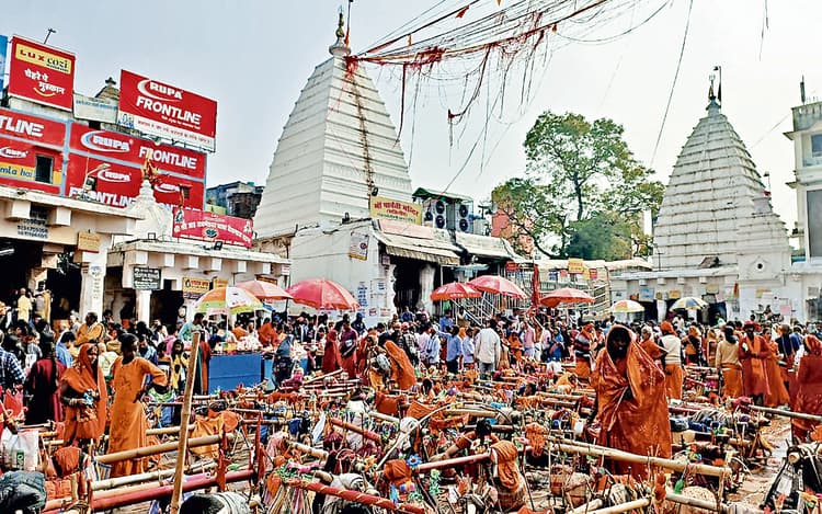 पारंपरिक कांवर से पटा रहा मंदिर परिसर